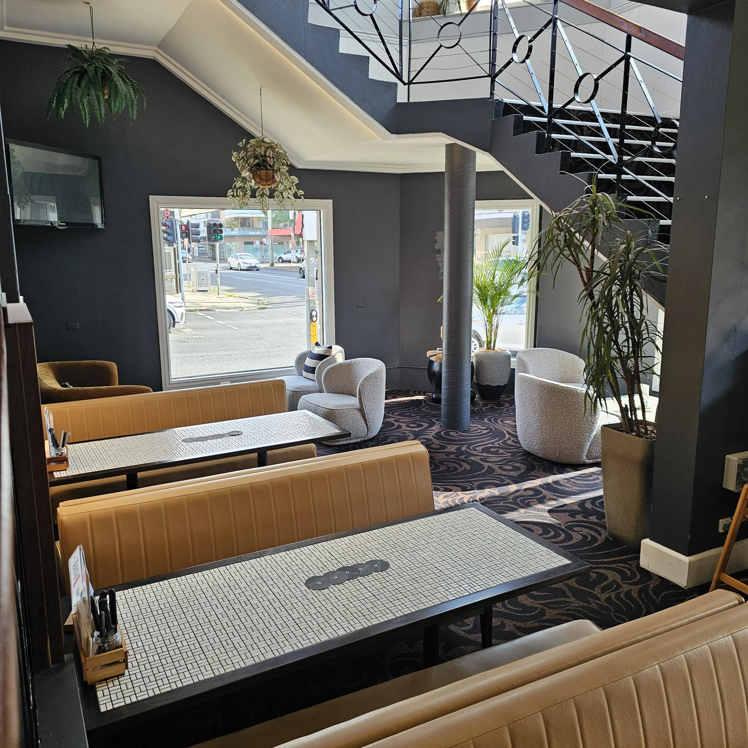 Our dining space features comfortable booths, classic dining tables, and high-top seating—offering the perfect spot for every occasion.